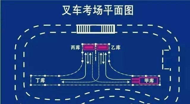 作業(yè):乙?guī)斓呢浖埽ǜ叩哪莻€)入叉叉貨以后倒車直接升到頂(油缸提升的時候要加油提速,不要怠速提升),放下后稍微停一下,馬上又提升放回下層,然后倒車入丁庫,入庫時只要求整車身入庫,入庫后,貨叉要放到地,不然要扣分。丙庫的貨架一樣的操作,貨架放地上以后,倒車回甲庫起點,貨叉也要入庫,謹(jǐn)記貨叉要后傾并提升至離地20-40cm。